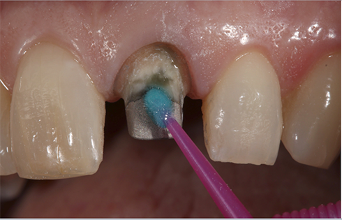 The internal aspect of the crown was cleaned with Ivoclean (Ivoclar Vivadent) and then immersed in alcohol and placed in an ultrasonic cleaning unit for five minutes. It was then rinsed, dried and set aside.