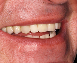 A 52-year-old male patient presented in the clinic with a fractured upper denture. During his first clinical visit, it became obvious that the old dentures had extreme functional deficits, including poor esthetics. The denture in the lower jaw presented with missing teeth in regions 22 and 27 (in the lower cuspids), after the extraction of the patient’s natural teeth. No occlusal contacts on the right molars or a general substantial loss of the vertical dimension were visible. The Class III setup didn’t offer functionality and stability. The denture teeth were severely abraded and looked dull. The patient didn’t use his lower denture because it didn’t offer stability when he talked or chewed. The upper and lower alveolar ridge presented signs of atrophy, resulting from extractions and a missing load. It was determined to rehabilitate the patient with new dentures. The goal was to switch the bite to Class I in normal occlusion and to give the patient functional security. Denture fit and comfort as well as esthetics needed to be re-established.