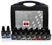 10. The tooth portion of the restoration was tinted with a thin layer of ochre shade to blend with enamel on tooth No. 9 using Kolor Plus (Kerr).