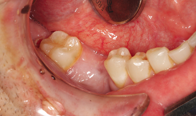 Fig. 1 An intraoral photo shows a patient missing a lower-right first molar