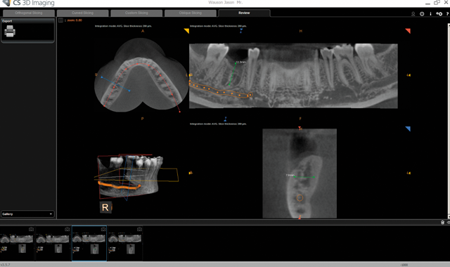 Using Carestream Dental’s CS 3D Imaging software, I can virtually assess the area to determine if there is enough bone to continue or if a sinus lift, bone graft or other procedure is necessary first. If the patient is ready for an implant at that time, I can also assess the complexity of the case to determine if a surgical guide is necessary.