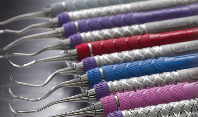 EverEdge 2.0 instruments are available in the popular original EverEdge diamond-knurled, large-diameter handle, as well as the Resin 8 Colors handle, a lightweight resin handle featuring a color-coded system to easily identify scalers and curettes that correspond to areas of the mouth. The new purple grips allow for easy identification of the EverEdge 2.0 scalers in each set-up.