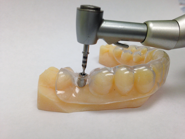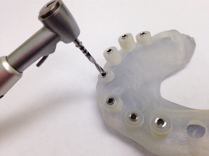 When it comes time to perform the implant, doctors can turn to surgical guides to ensure they are drilling in the exact location with the precise angle and depth. These guides are made, most often, by the lab, but sometimes can be fabricated chairside, based on the scan data.
