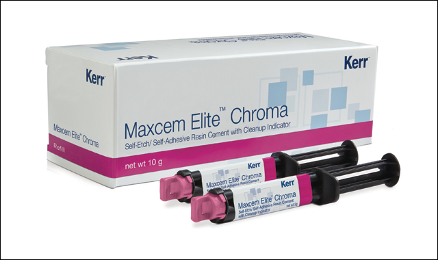 Kerr Restoratives announced the launch of Maxcem Elite Chroma, said to be the first self-etch/self-adhesive resin cement offering a color cleanup indicator, reportedly making it the smartest cement available on the market today.