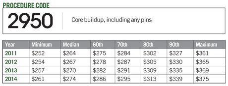 Buildups are typically considered “all inclusive” now with any crown code, except in select circumstances. Some insurance carriers will reimburse patients for buildups only in cases of previous endodontic treatment. A few will provide a benefit if the remaining anatomical tooth structure can be described as less than 50 percent and inadequate to provide proper retention of a crown. For this procedure, documenting radiographs are essential as well as a detailed description of the condition of the remaining tooth structure. Intraoral photographs can be very helpful to document the need for buildups, because of a tendency to over utilize this code carriers are more and more requesting additional supporting information before payment.
