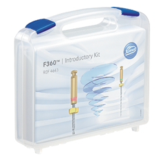 This Endo Introductory Kit contains twelve F360™ files in size 025, twelve in size 035, the Komet® AK10 file for canal pre-enlargement, one pack of paper points and a pack of gutta-percha points. The F360 endodontic file system reportedly permits preparation of most root canals with only the two file sizes provided.