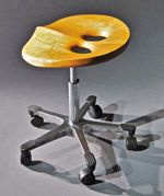 The beautiful hard woods (solid cherry or walnut) of these remarkable ergonomic seats are sealed with a clear polyurethane finish that makes cleaning and disinfecting in the treatment room a snap. The addition of the optional lumbar support accessory makes for a perfect operatory or office chair. You really have to try one of these. Once you do, you’ll wonder why you would ever want to use any other seat during your day. The cost for these exquisite handmade chairs is really no more than what you would normally pay for a conventional operatory stool, but the quality and durability will far outlast any upholstered chair.