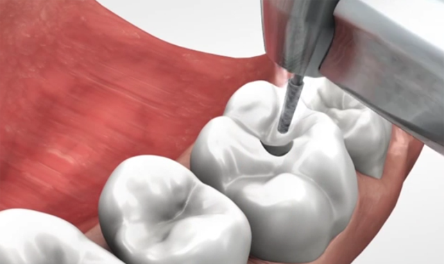 3: With the Diamond 8862, remove the proximal enamel, avoiding contact with the adjacent teeth.