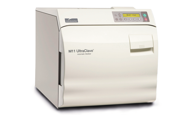 The Midmark M11 UltraClave® Automatic Sterilizer is designed to be the most reliable and easiest to use autoclave on the market. Preprogrammed cycles can improve convenience, flexibility and increase confidence for every cycle. The sterilizer offers a patented automatic door that opens at the end of the cycle to promote faster, more efficient drying of instruments.