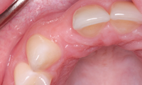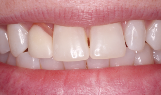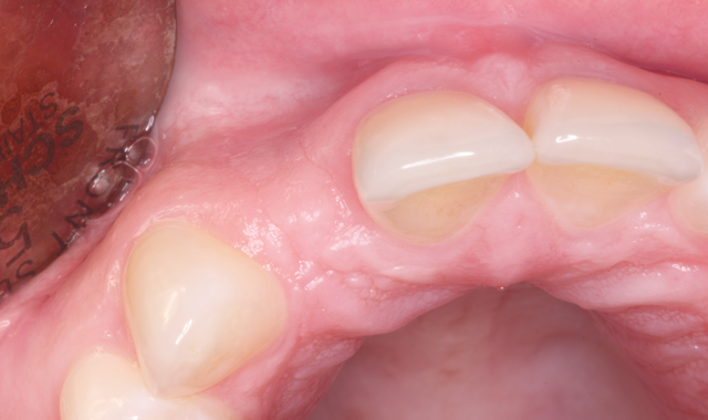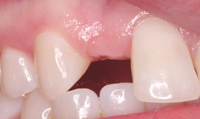 A female patient in her early 20s presented for initial consultation with a congenitally missing maxillary lateral incisor. She had been wearing a flipper appliance for much of her life and desired an implant restoration for her missing tooth now that her dental development was complete.