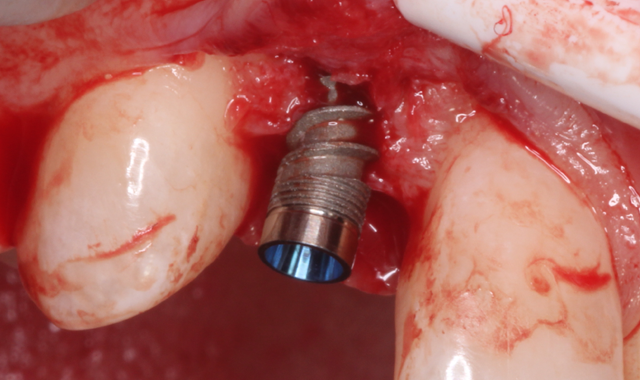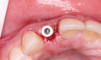 This implant would also prove advantageous because it could be restored using a custom zirconia hybrid abutment, which was important because of the restoration’s location in the esthetic zone.