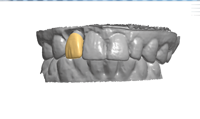 Using the virtual model generated by the digital impression, an Inclusive® Custom Abutment was designed with CAD software to optimize the emergence profile and esthetics of the BruxZir® Anterior restoration.