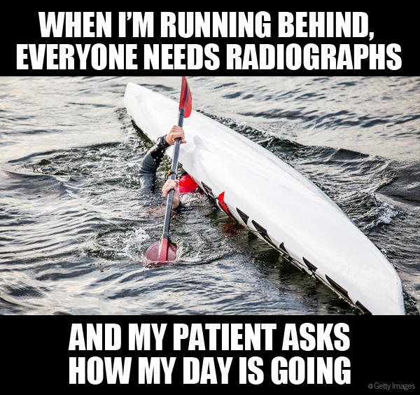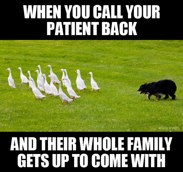 ...and the patient needs radiographs to boot… Really though, a parent coming back with their child or a caregiver coming back with the patient is one thing. But seven family members coming back for a prophy is a crowd.