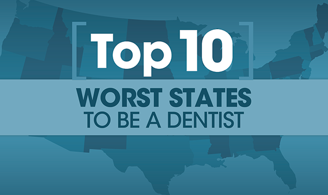 Everyone is partial to his or her particular hometown or state. Unfortunately, despite your loyalty to your locale, your state may not be the best one professionally for dentists. We compiled data from numerous sources to determine not which states are the best to practice dentistry, but which ones are the worst of the worst. Is your state on the list?