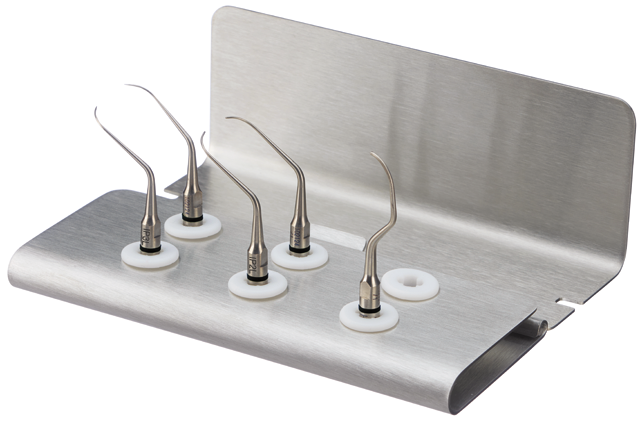 The Implant Protect Kit is designed to provide reliable and complete implant debridement for the surgical and nonsurgical treatment of peri-implantitis. Manufactured from pure titanium, Implant Protect tips reportedly preserve the implant surface. The mechanical action of titanium is said to avoid the transfer of material on the implant and limits the alteration of the surface, reducing the risk of bacterial recontamination. Implant Protect tips are compatible with the full range of PURE NEWTRON piezoelectric ultrasonic devices from ACTEON North America.