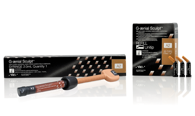 G-ænial™ Sculpt is a compactable, universal composite that features the same high density, uniform dispersion nano-filler technology found in G-ænial™ Universal Flo. The material is formulated to provide a strong, wear resistant and radiopaque finished restoration with beautiful esthetics. A self-shining effect enables simple rough finishing with a bur to bring the restoration to a beautiful luster and will continue to increase in polish over time. It is available in 17 shades in syringe or unitip.