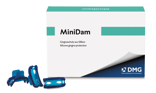 DMG America LLC introduced the DMG MiniDam, a new style of latex-free gingival protection device that reportedly is small enough to be placed quickly and easily, protects the proximal area during treatment and provides comfortable gingival coverage for patients. Its unique shape is said to allow it to self-stabilize around adjacent teeth, where it securely maintains its position without the use of clamps.