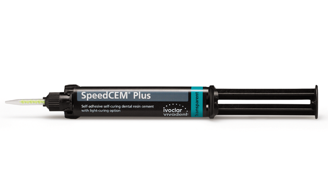 SpeedCEM Plus is a self-adhesive, self-curing resin cement with light-curing option. It reportedly provides the optimum combination of performance and user friendliness. With its optimized formulation, the cement is especially suited for restorations made of zirconium oxide and metal ceramics, and the cementation of restorations on implant abutments. The material achieves a high bond strength to zirconium oxide, non-precious metal such as titanium, and dentin without exposure to light.