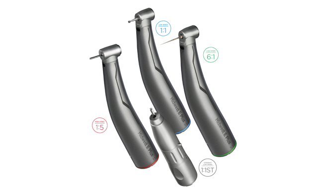 Perform a broad range of procedures with the power and flexibility provided by the new Midwest® E Plus Electric Handpiece Attachments. They are designed to easily let you apply your skills to the fullest with confidence, accuracy, and efficiency. Featuring a 20-percent-smaller head for easier access, titanium shell for reduced weight and ceramic head bearings for extended durability, the new attachments offer many reasons to upgrade. Seamlessly integrate electric into your existing treatment center with the Midwest E Plus system.