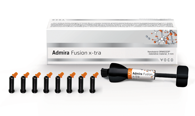 Admira Fusion x-tra is formulated as the first ever nano-ORMOCER® through the “FUSION” of VOCO’s Nano-Hybrid and ORMOCER (ORganically MOdified CERamic) technologies. Its chemistry base is formed by silicon oxide, making up both the glass fillers as well as the ceramic resin matrix. It is said to offer up to 50 percent lower polymerization shrinkage (1.25 percent by volume) than conventional composites, as well as up to 50 percent lower shrinkage stress.