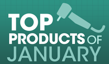 In January, we saw a prefilled endodontic irrigation kit, a resin cement, mouth and night guards, in-office whitening strips, a panoramic imaging system, a communication system, a turbine, a base/liner and a handpiece line.