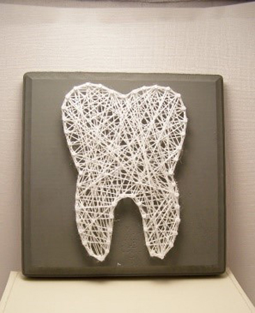 Tooth wall art! This tooth-shaped string art is handmade and comes in multiple colored backgrounds. This would be a great addition to your home or office!