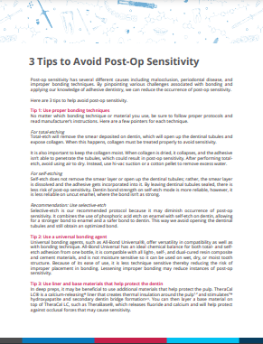 Post-op sensitivity has several different causes including malocclusion, periodontal disease, and improper bonding techniques. By pinpointing various challenges associated with bonding and applying our knowledge of adhesive dentistry, we can reduce the occurrence of post-op sensitivity. These tips help to avoid post-op sensitivity.