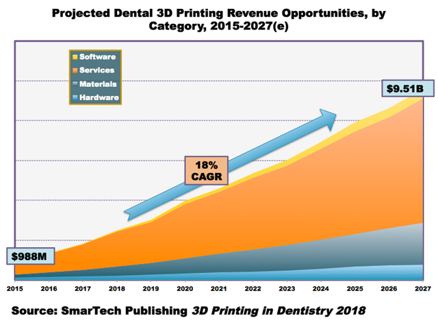 SmarTech Publishing, a provider of in-depth industry analysis services to the additive manufacturing and 3D printing industry, has just published its latest market research study titled, “3D Printing in Dentistry 2018, An Opportunity Analysis and Ten Year Forecast.”