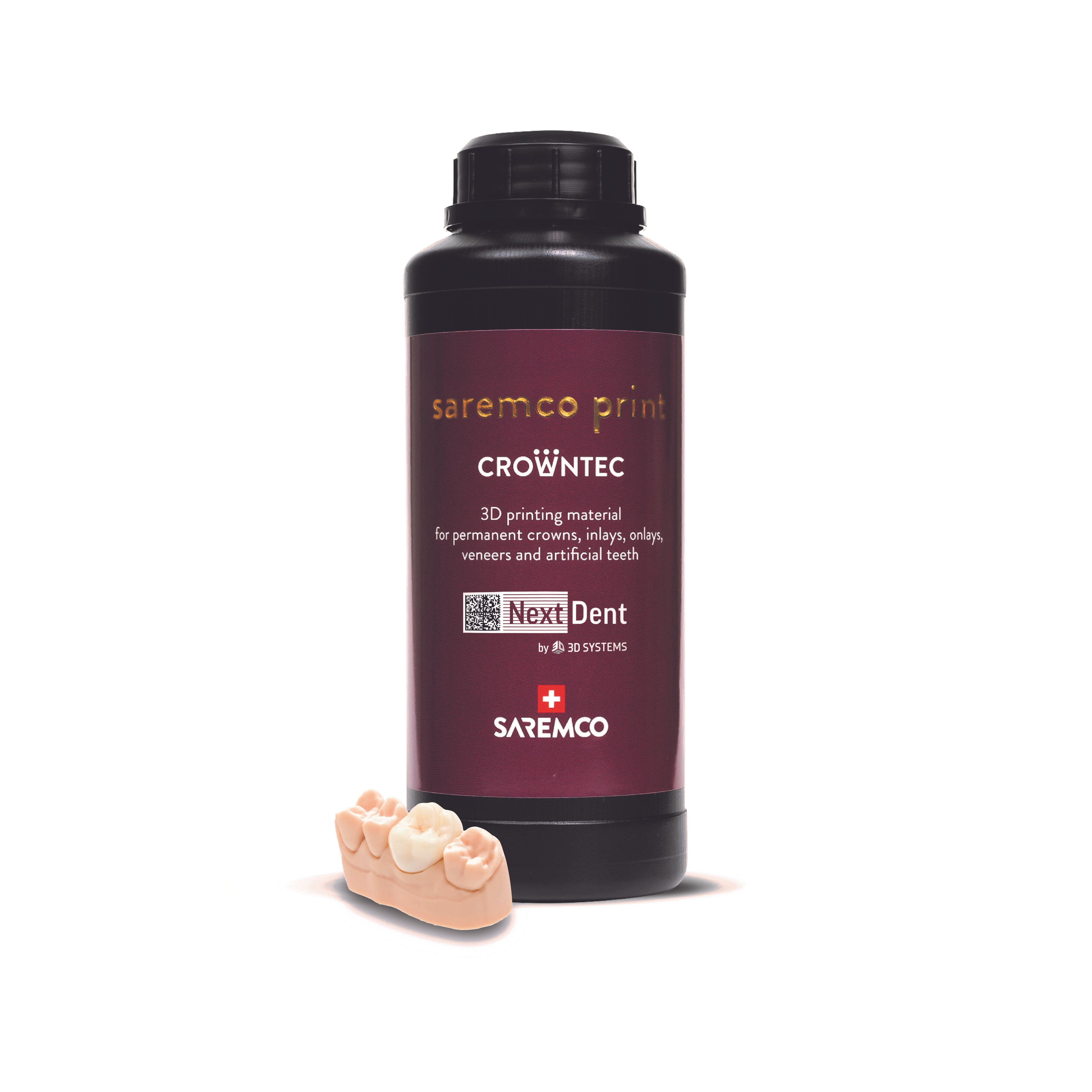 The companies are also announcing the immediate availability of Saremco’s CROWNTEC™ material to be used with 3D Systems’ NextDent 5100 dental 3D printer and software for the production of patient-specific permanent crowns. CROWNTEC is a new generation composite resin that can be used to additively manufacture biocompatible permanent restorations including crowns, inlays, onlays, veneers, and artificial teeth for dentures. This Class IIa material, which recently received 510(k) clearance, is offered in a variety of shades to match the patient’s teeth for a natural-looking aesthetic.