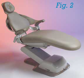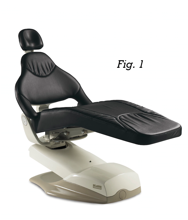 Narrow backrests allow closer positioning to the oral cavity, especially in the nine to 10 o’clock positions. A narrow backrest can also greatly improve the assistant’s posture by allowing closer positioning. The Midmark Ultratrim patient chair (Fig. 1) and DentalEZ J/V Generation Chair (Fig. 2) both feature narrow upper backrests.