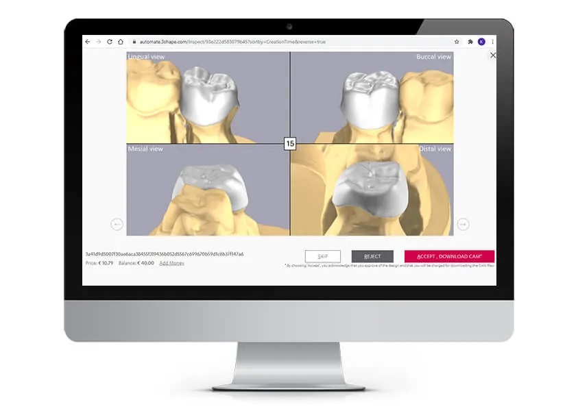 Why: Using 3Shape Automate allows dental labs and busy dental practices to scale up their CAD/CAM production by leveraging the power of artificial intelligence to create proposed restoration designs in as little as 5 minutes. The system sends design proposals back for approval, and users only pay for the designs they approve. It has a design approval rate of 92%, and the site can process multiple designs simultaneously, allowing busy labs to send hundreds of cases and receive design proposals in a selected turnaround time.