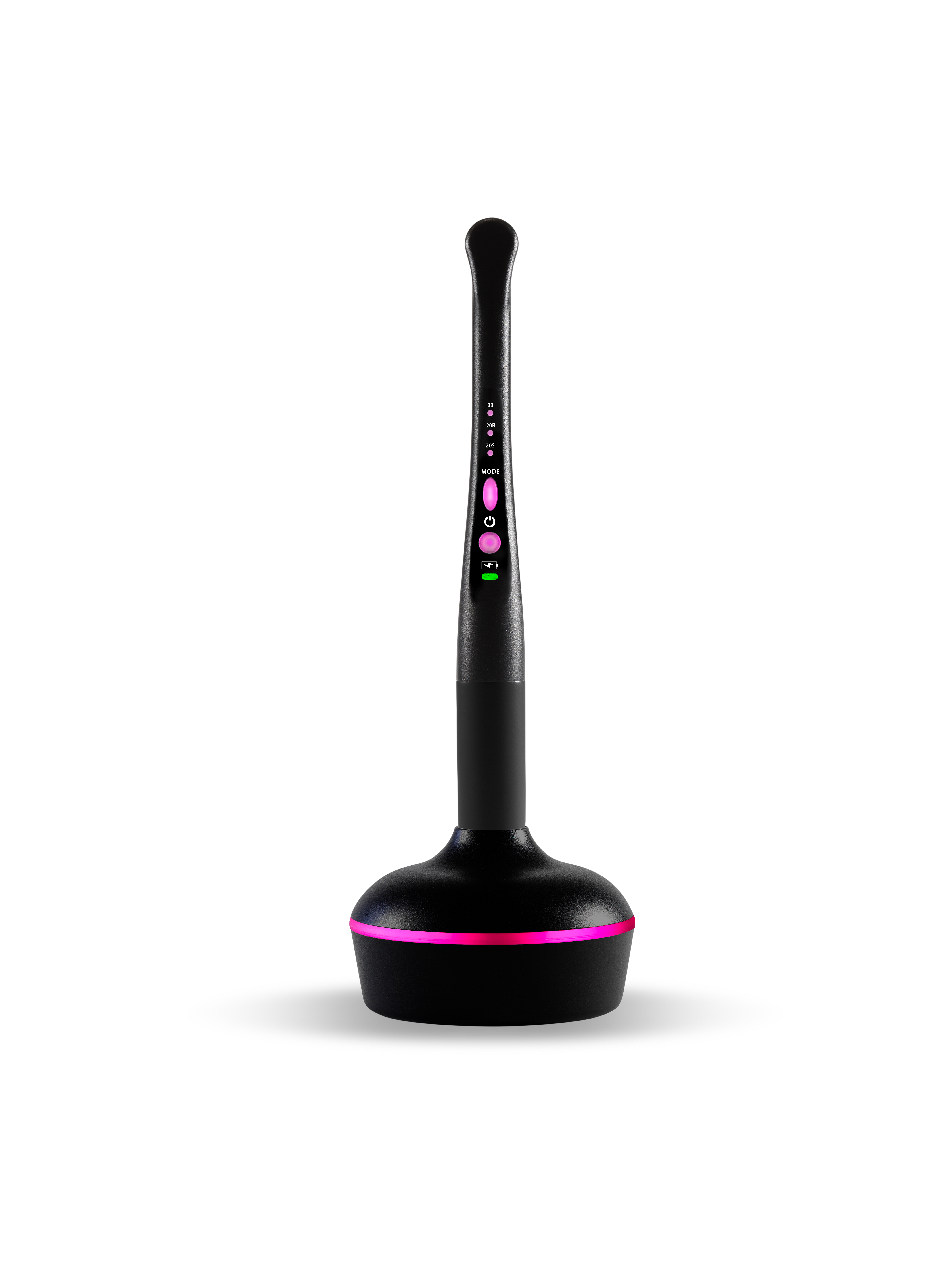 *How: With its patented QuadWave™ Technology, this curing light uses 4 different wavelengths: UV photoinitiators, CQ initiators, Enhanced polymerization, and Near-infrared (NIR) enhanced polymerization. It increases polymerization with its NIR wavelength, which leads to an overall decrease in restoration failure. Additionally, blue light output is reportedly limited by its ability to damage pulpal tissue if too much power is emitted. Since NIR wavelength is not absorbed by pulpal tissue, the PinkWave is able to safely deliver more power. The light features 3 different modes—Standard and Ramp, (1640mw/cm2) and Boost (1865 mw/cm2). With what is reportedly the largest curing area on the market at 113 mm2, the PinkWave is said to decrease shrinkage by 37% and increase polymerization by 19%. Plus the unit is lightweight at just 88g.