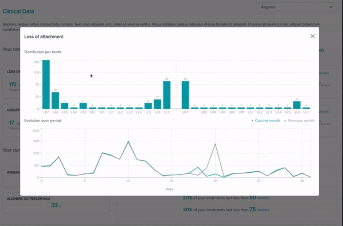 DM Insights offers precise views of patient adherence and the ability to compare compliance data with practices in your region. Practices can also compare the number of patient messages received from the previous month, compare the number of additional scans requested from the previous month, and the number of teenagers and adults currently monitored and categorized by doctors’ preferred protocols. DM Insights’ clinical data allows clinicians to view the top 5 most used protocols and receive detailed notifications, including the percentage of patients affected and at which tooth the event frequently occurs.