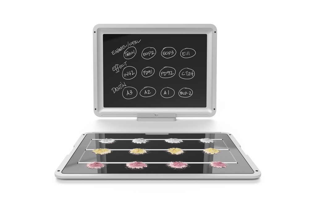Milled from a single block of aluminum by computer numerical control (CNC), the tray is available in a large size of 12.5 × 8.5 in. Its large slab of black pearl glass measures 12 × 7.5 in; optional hydration strips are anchored in a water reservoir system. Black “smartphone” glass is embedded in the aluminum lid, which is held up by an exclusive stand for whiteboarding convenience.