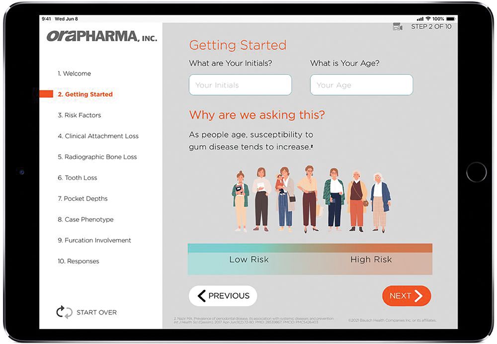 The MyPerioHealth app provides vital information to the clinician and enhances the patient’s ownership and understanding of their case of periodontitis. The clinician can then discuss the severity, extent, and rate of progression of the patient’s case of periodontitis, rather than just indicating the presence of gum disease. Elevating the patient’s ownership and understanding of their disease will increase dialogue and case acceptance.