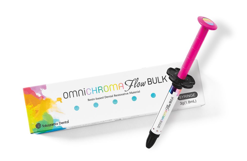 OMNICHROMA Flow BULK is a low-viscosity, light-cured, radiopaque composite resin for use in direct restorations. It is a single-shade matching material. OMNICHROMA Flow BULK is a flowable material that can be placed in 3.5-mm increments and is available in syringe form.
