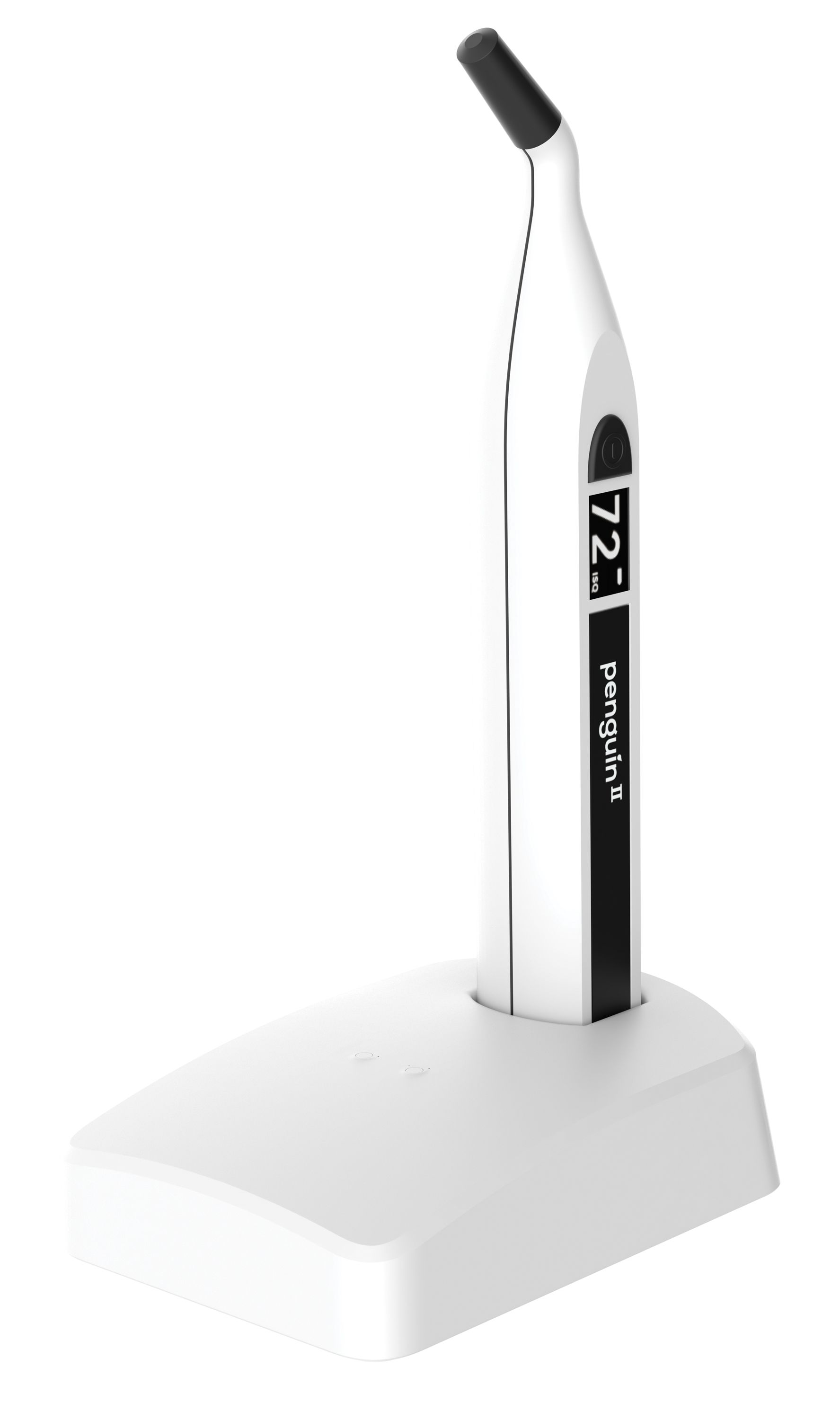 The technique behind the Penguin II is called resonance frequency analysis (RFA) and the measurement unit is named the implant stability quotient (ISQ). A specially designed peg, called a MulTipeg™, is attached to the implant. The peg is excited by magnetic pulses from the instrument and vibrates due to the stiffness in the contact area between the bone and the implant surface. The instrument measures the frequency of vibration and translates it to an ISQ scale value between 1 and 99, with a higher ISQ value correlating to better stability. For example, a measurement of ISQ 70 indicates a very stable implant with low micro-mobility.