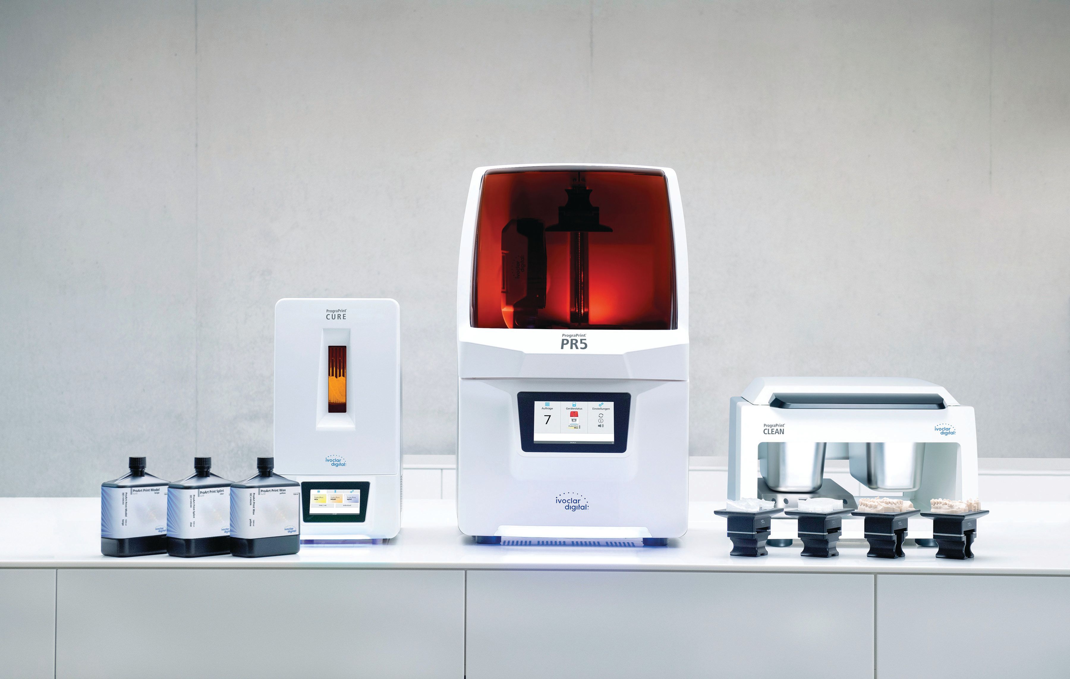 Why: From CAD to postcuring, this system consists of components engineered to work together to maximize production throughout the workflow. The PR5 printer is the cornerstone of the system, with a self-calibrating DLP light engine designed to ensure a high degree of precision. Its self-contained ProArt Print Wax, Splint, and Model cartridges allow for virtually contactless handling of the resin materials, which reportedly eliminates contamination and waste. The PR5 features built-in material recognition technology that automatically alerts users of the level of print material in the cartridge and even warns users if the wrong material has been inserted for the chosen application.
