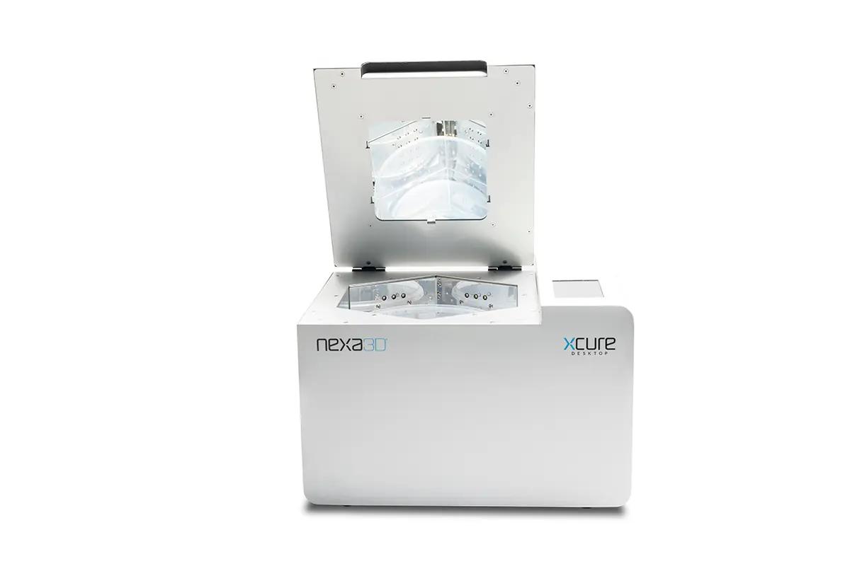 This versatile xCURE Desktop from Nexa3D is a high-powered UV curing system that supports 3 wavelengths and is designed to deliver ultrafast curing times.