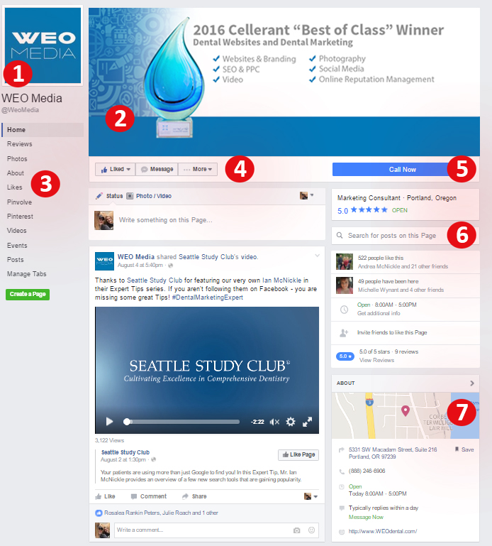 Now that the logo has its own area you have additional creative space on the cover image. This image helps tell the story of your practice. You might want to use an image of the front of your office, a full staff picture, highlight an award you’ve won, or use something similar that speaks to your brand. The cover image is the same size as before, but now that the logo has been moved you’ll want to redo this image to take advantage of the extra space.