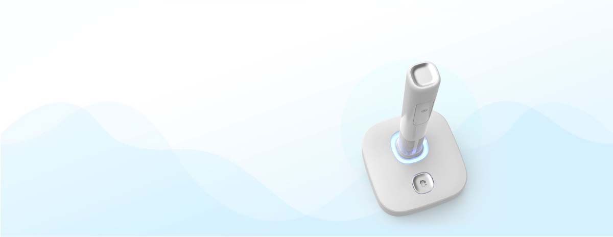 It is portable and lightweight and can easily be cleaned—simply push the button on the base station and the rod automatically extends for quick disinfecting. The rod will auto-retract after 30 seconds, or the user can push the button a second time to retract the rod immediately. Additionally, the cloud-based AL platform is web-enabled, HIPAA compliant, and the wireless feature of the device makes it easy to transport from operatory to operatory and enables online software updates easily and seamlessly.