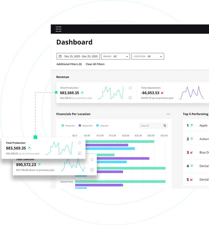 Jarvis Analytics from Henry Schein One directly takes data from the PMS and provides key performance indicators and other insights from that aggregated data, which can be especially useful for dental support organizations (DSOs) to track performance across different dental practices in the network.
