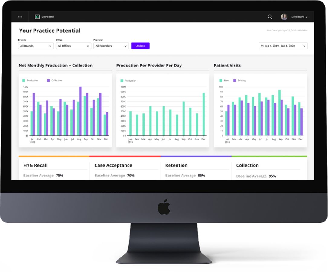 Jarvis Analytics provides dental practices and dental support organizations with artificial intelligence–powered actionable data insights. Image courtesy of Henry Schein One.