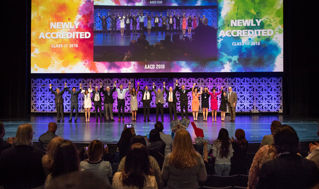 In addition to rich educational opportunities, the scientific session is a chance for the Academy to recognize and honor its members who have demonstrated their dedication to continuing education and responsible patient care by becoming an Accredited Member or Accredited Fellow. This year, the AACD acknowledged 14 newly Accredited Members and four newly Accredited Fellows. Other exemplary members of the Academy and of the profession were also recognized and honored with Celebration of Excellence Awards, known as the Evy.