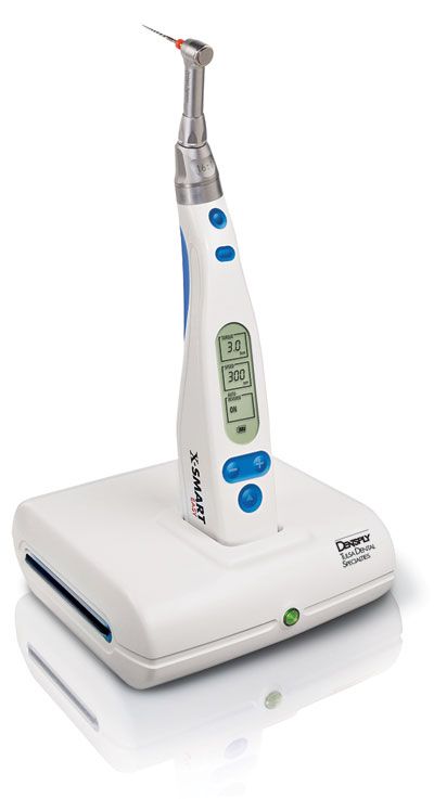 The X-Smart EASY Cordless Endo Motor is a lightweight, simple to use endodontic motor that features a comfortable and well-balanced handpiece with rubberized grip and quiet operation. The slim, 16:1 contra angle head is six-position-adjustable to allow for an improved field of vision and better access.