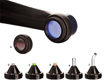 These include a Black Light lens used to detect difficult to visualize resin restorations during removal; PointCure lens used to tack cure ceramic veneers or partial coverage restorations for stabilization prior to cement cleanup; TransLume green and orange lenses, which enable visualization of cracks or undetectable inclusions within the tooth; ProxiCure Ball lens, which aids in contact formation at the matrix interface when placing Class II composite restorations; and EndoGuide lens, which allows for better visualization in tight diameter areas like canal orifices or apical procedures.