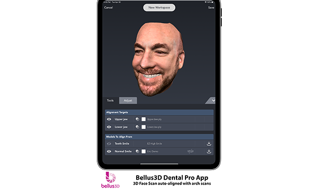Bellus3D Dental Pro is a 3D face scanning dental app that reportedly scans and reproduces a user’s 3D face in less than 15 seconds on an Apple iPad Pro or iPhone X. Once the scan is complete, a one-click alignment function is designed to perform automatic lip-line cutout of the teeth and registers the 3D face scan to align with dental intraoral or CBCT scans for immediate use in dental design software. The app requires the use of an Apple iPhone or iPad Pro that include the built-in FaceID/TrueDepth Camera.