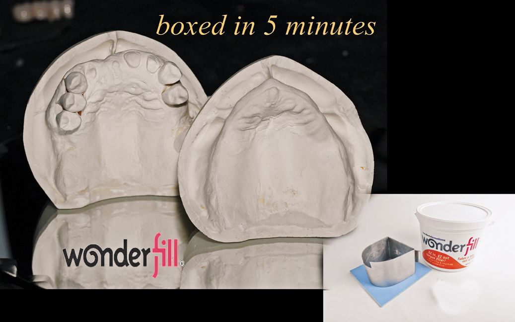 Dental Creations, a small company near Waco, Texas that produces a variety of specialty products enhancing model work makes my next choice, the Wonderfill system. It consists of the Wonderform, a ring former, and water soluble boxing putty, Wonderfill.
