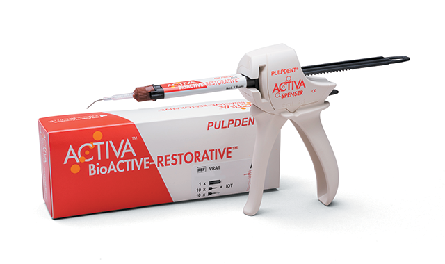 ACTIVA BioACTIVE-RESTORATIVE is a dental resin that elicits a chemical reaction from the tooth, releasing more calcium, phosphate and fluoride directly into the tooth structure to help it to actually repair itself. Whether the lesion is from decay, fracture or trauma, the interface between the material and the tooth is said to result in less vulnerability to decay over time.