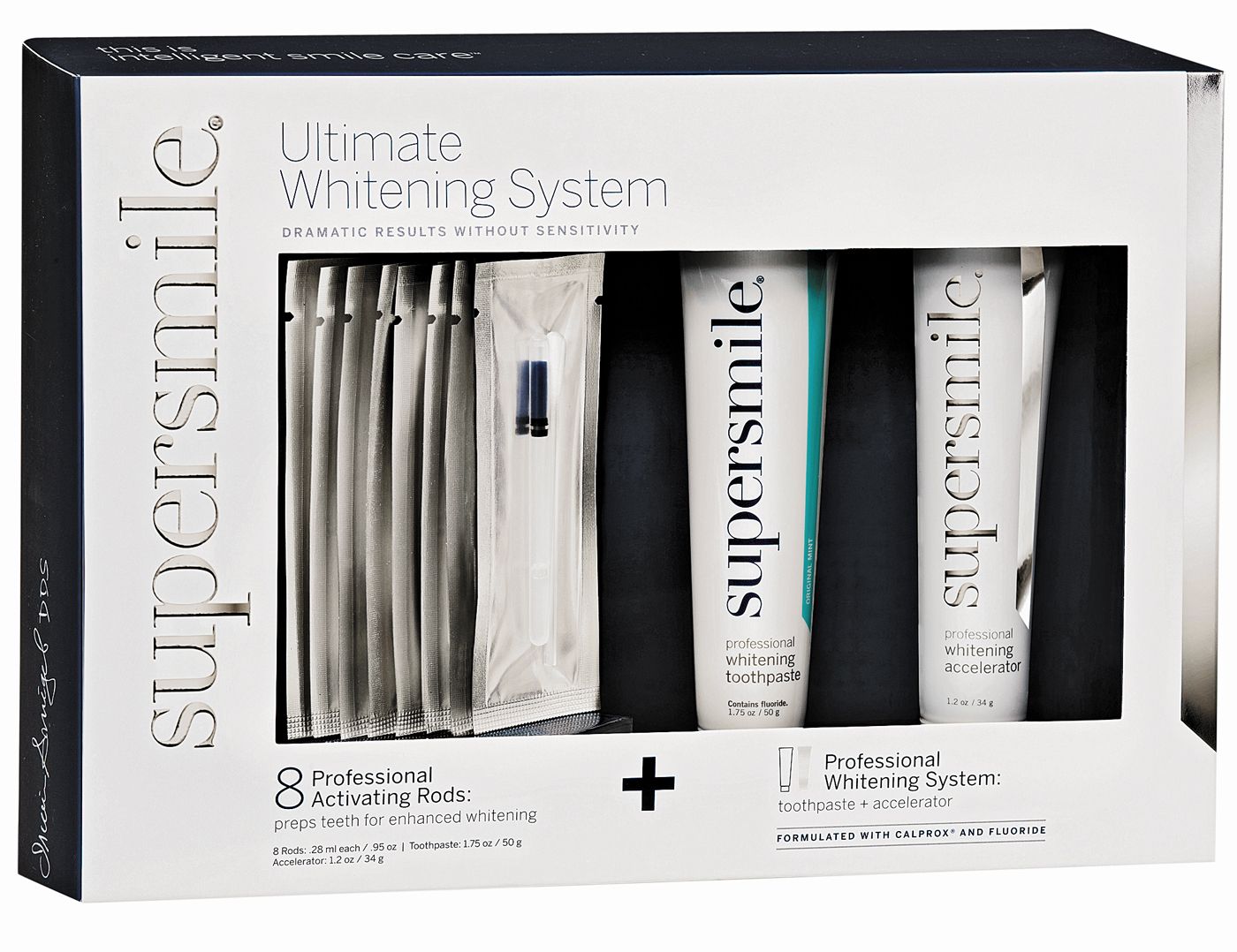 The Supersmile Ultimate Whitening System combines the Professional Whitening System with the Professional Whitening Rods for reportedly dramatic whitening results and health benefits to patients’ teeth and gums. The system protects against cavities and helps to re-mineralize enamel. It whitens teeth several shades, strengthens teeth and kills germs.